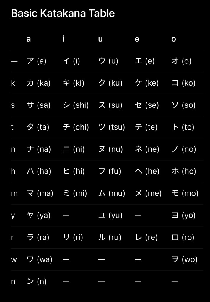 - ガ, ギ, グ, ゲ, ゴ (ga, gi, gu, ge, go)